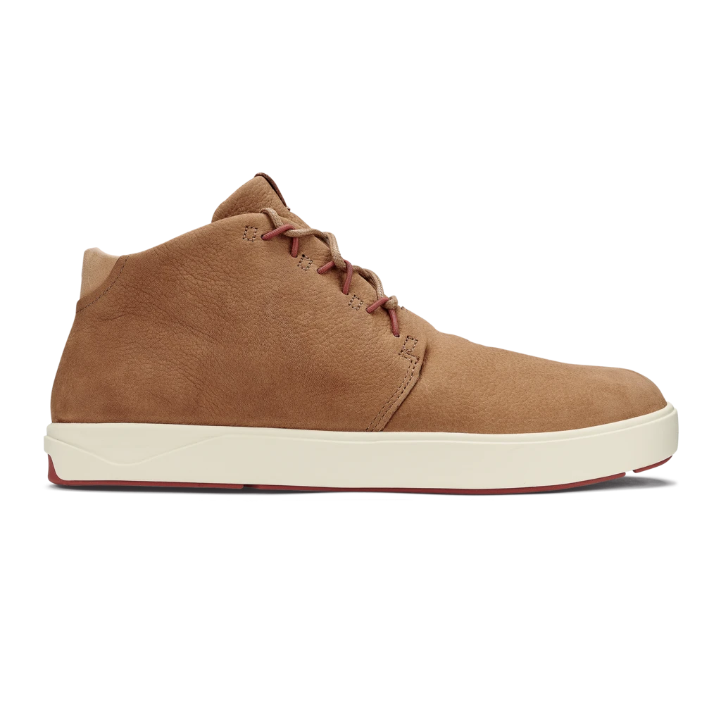 When hot summer nights give way to cool fall mornings, slide into Nana Hele. This sneaker-meets-slipper boot combines shearling lining in the forefoot, waterproof leather, and the ‘ Wet Grip Rubber’ outsole to keep warmth in and weather out. It’s the go-to boot for chilly weather. Matte-finished, pebbled, waterproof leather with elastic ghilleys and lace-up construction creates durability and comfort. Quilted heel, quarter lined, and twin-faced shearling in the forefoot for add warmth. The dual-density Pu footbed, cushy gel insert, and removable/washable wool-blend footbed cover deliver all-day support. Made with a lightweight, high-rebound Eva midsole and non-marking ‘ Wet Grip Rubber’ outsole. Designed siping and articulating features for added traction on wet surfaces. / Mens Shoes Nana Hele in Natural / 9 / Olukai